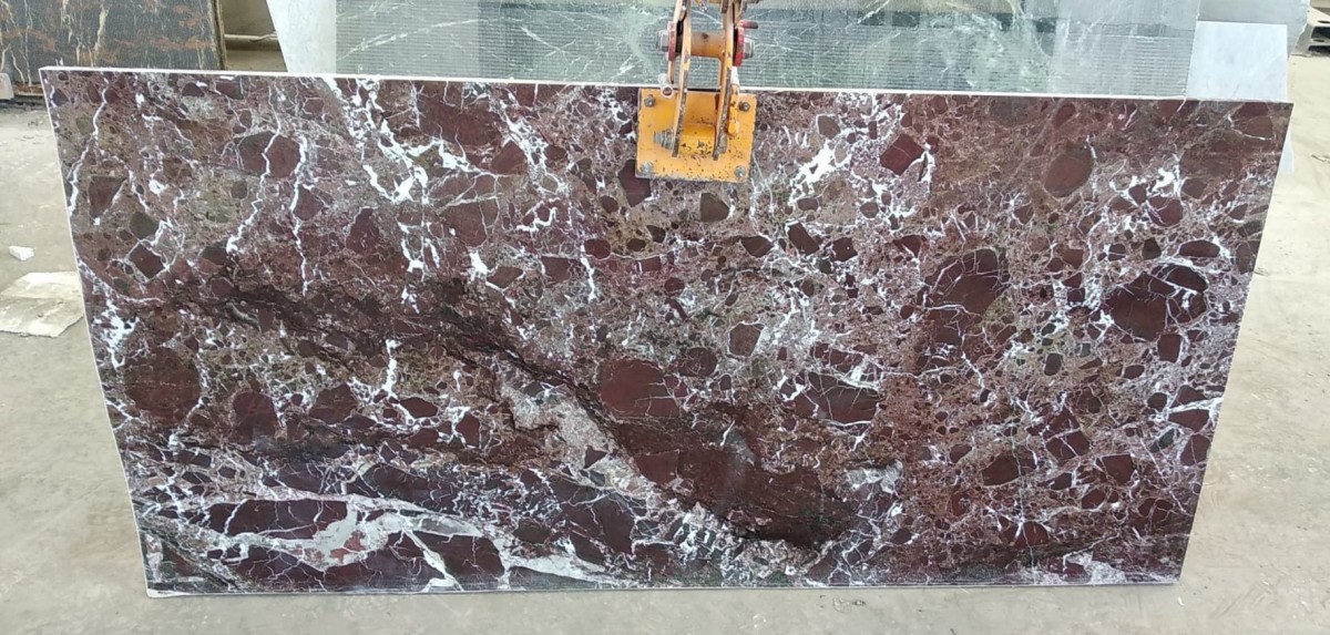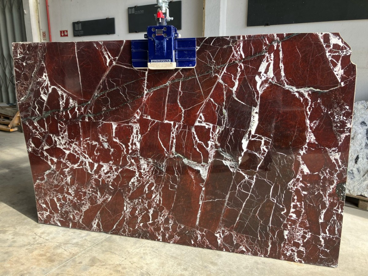 Encarnado, grená, avinhado e intenso, Rosso Levanto é um mármore que transmite solidez e força natural.