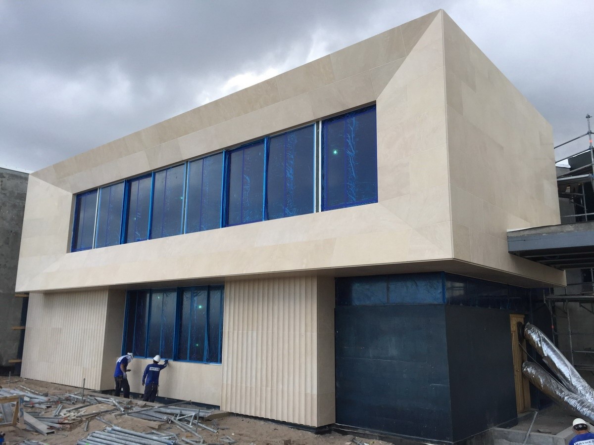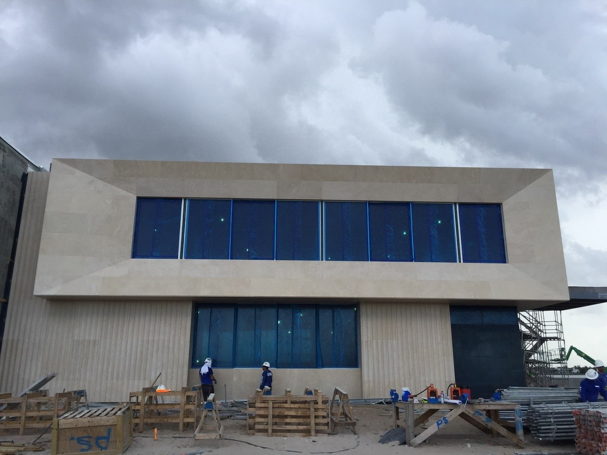 Quando recebemos os primeiros desenhos deste projecto em Palm Beach, Florida, o entusiasmo foi geral. Como habitual, houve alguns mock-ups a preparar, como a espessa fachada em meia-cana-larga, mas é um prazer poder agora apresentar esta imponente e moderna residência privada. A beleza natural do calcário português Creme de Mós ao serviço da arquitectura, e da arte!