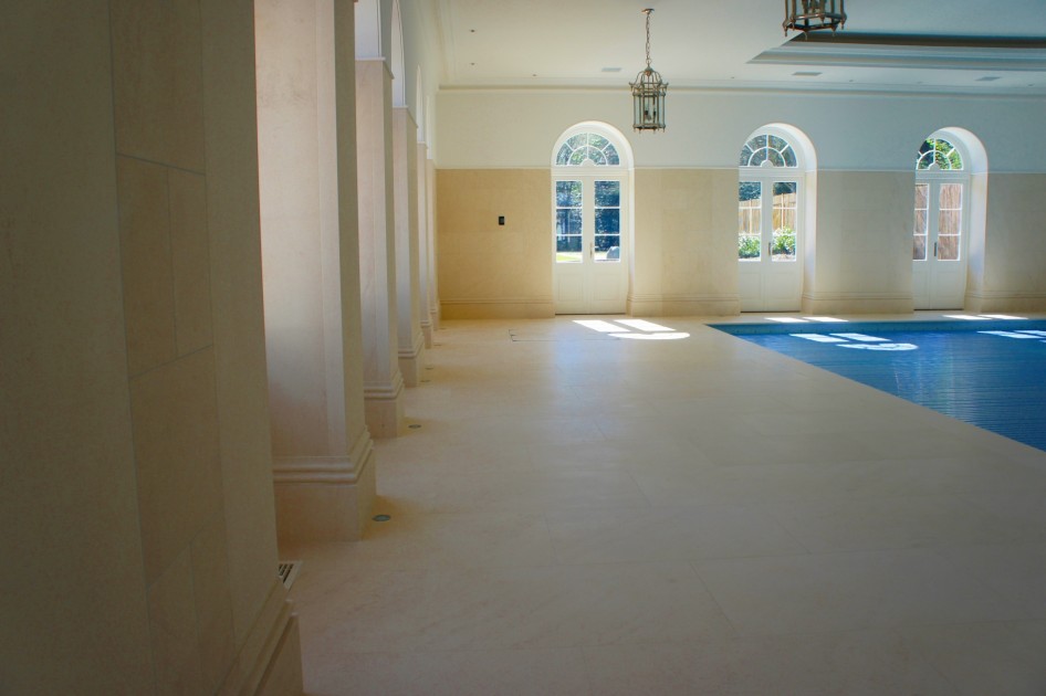 Calcário Rosal CD amaciado foi o fornecido para esta residência privada.