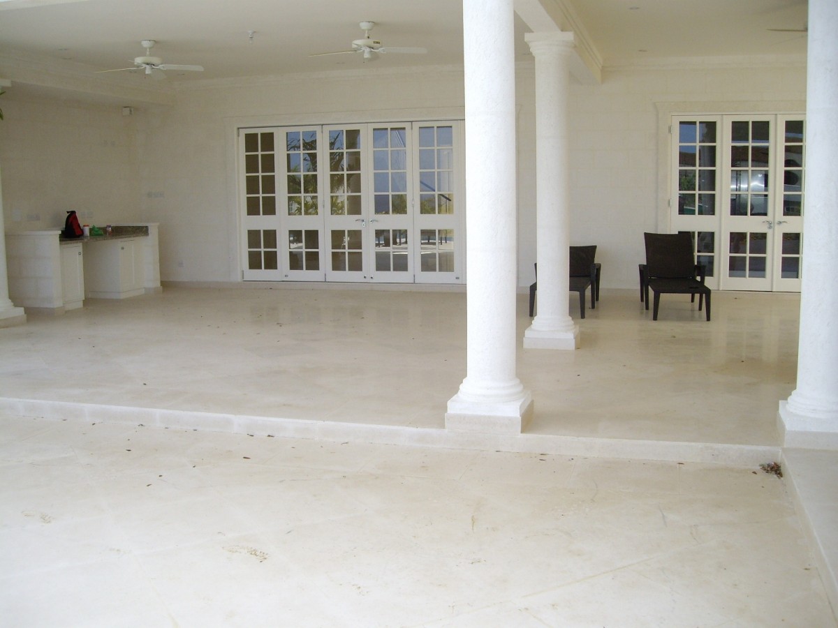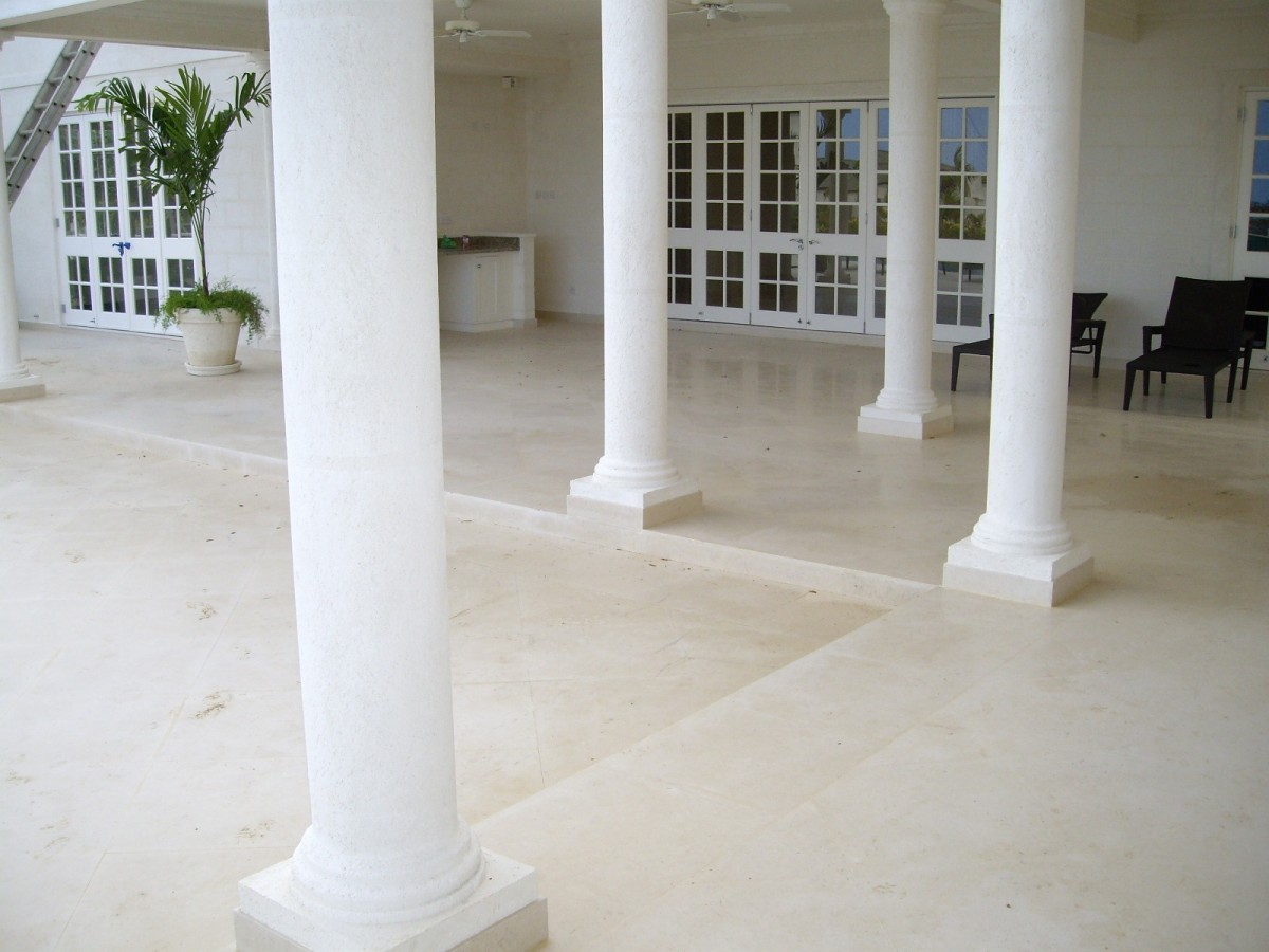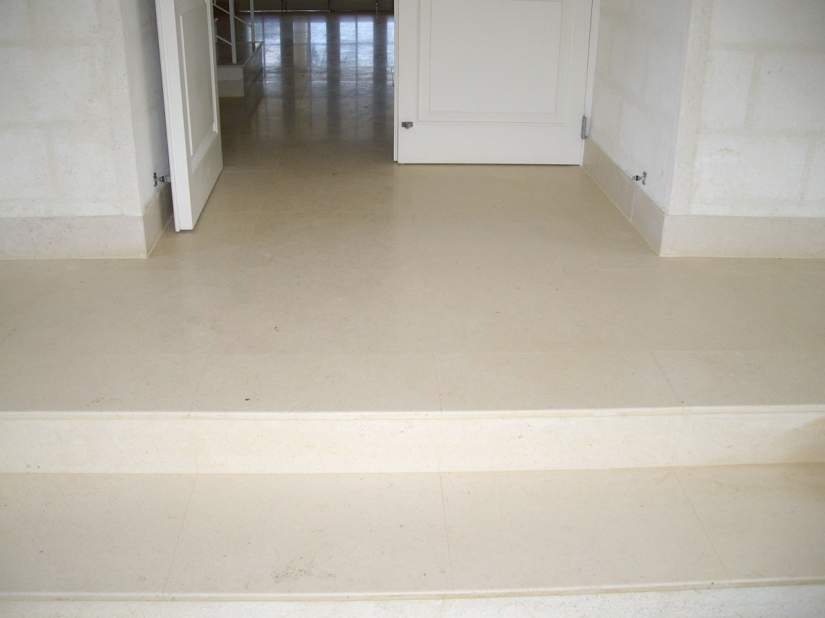 Mais de 1.600m2 em ladrilho amaciado de Fátima Creme: maioritariamente 60*60*2cm (830m2) mas também noutras dimensões para áreas específicas - principalmente 40*40*1,3cm e 60*40*1,3cm.