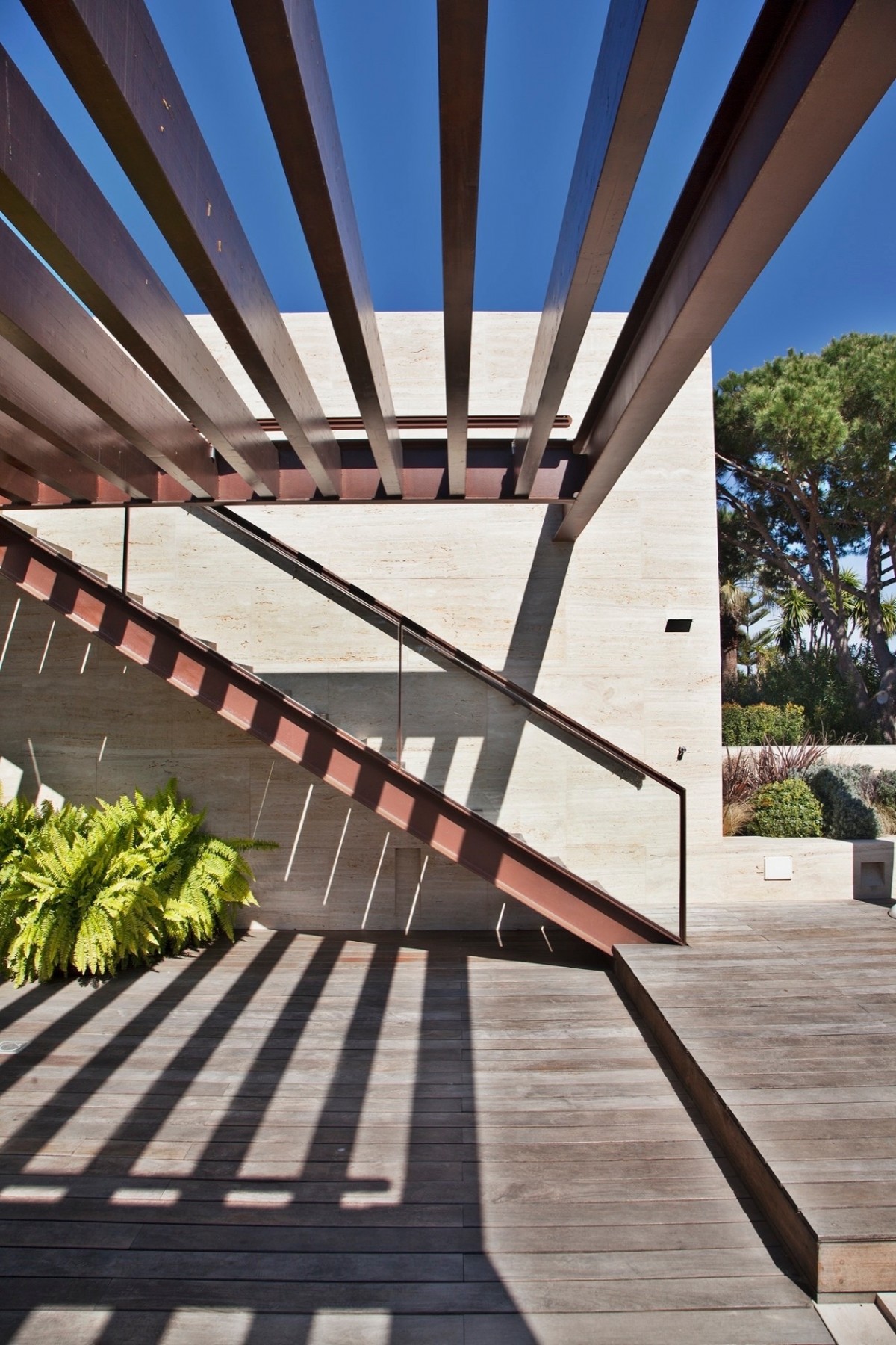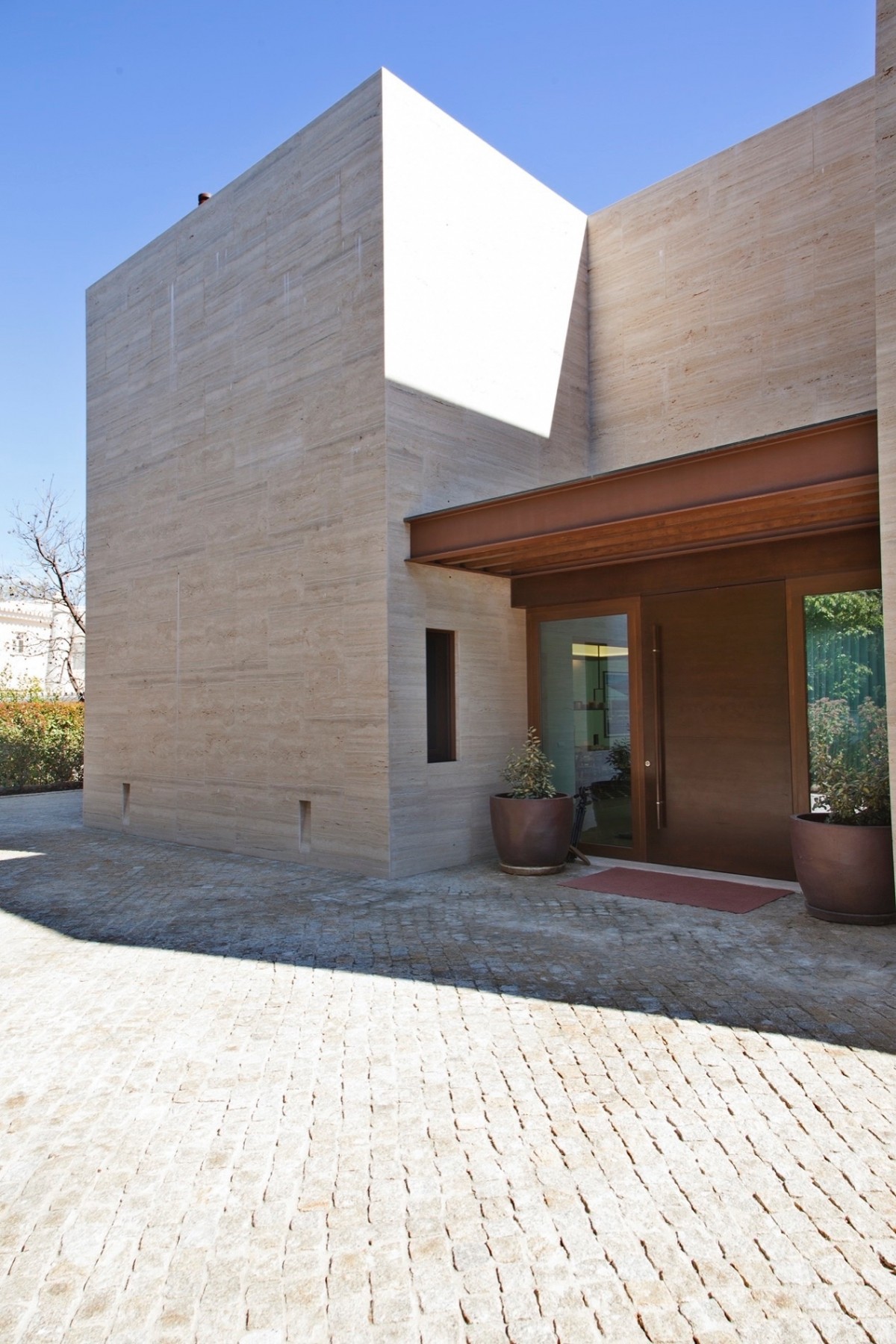 Uma casa extraordinária: uma arquitetura linda, uma luminosidade radiosa, e a força dos travertinos.