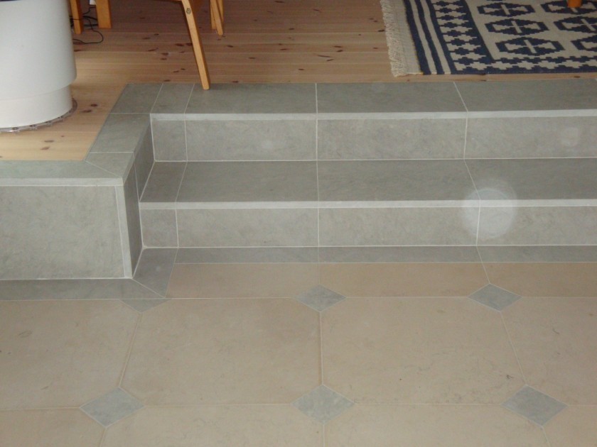 Para este projeto de moradia na Suécia os pavimentos comuns foram escolhidos no calcário português Porto Blue e no arenito espanhol Bateig Azul.