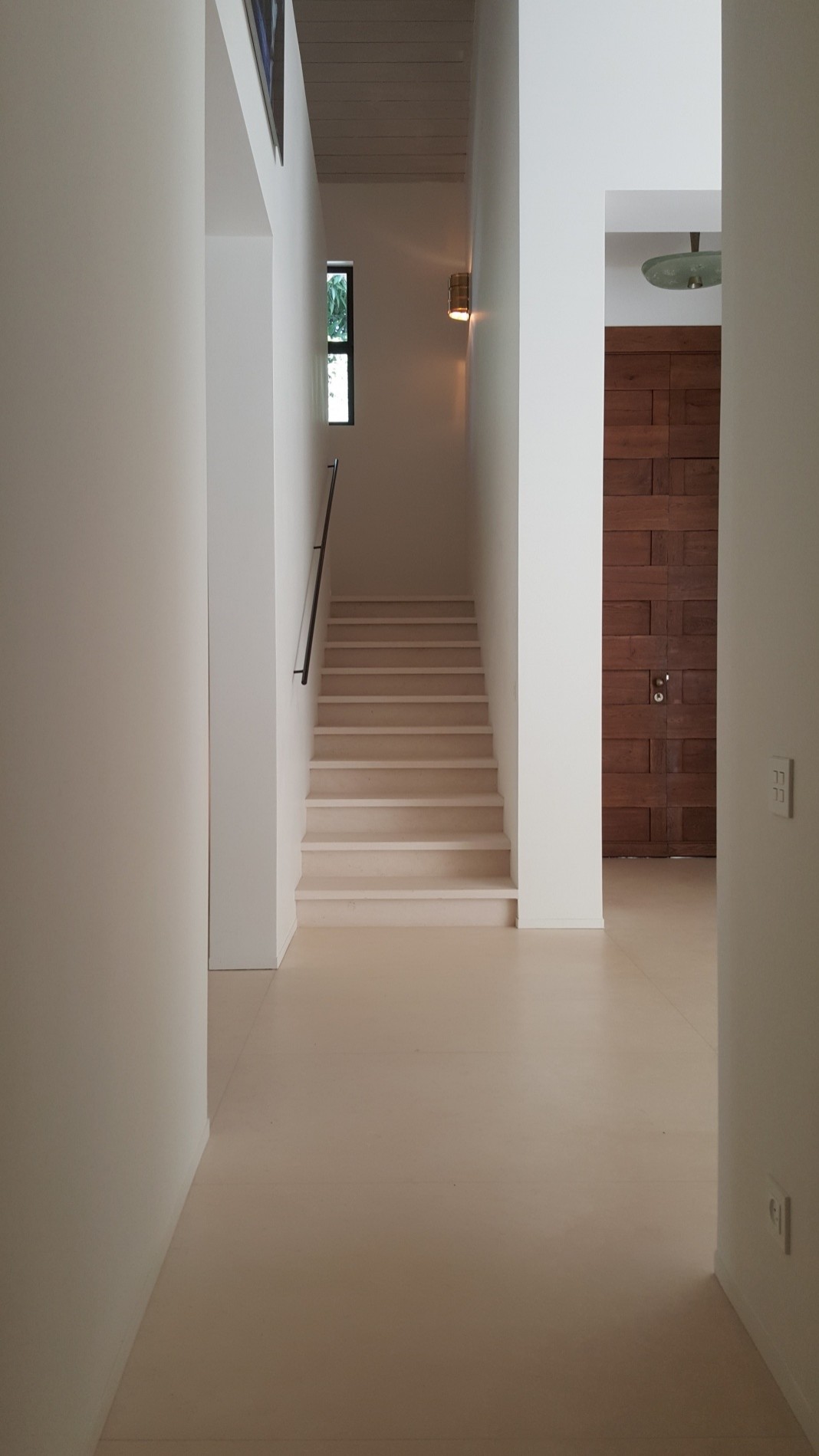 Calcário português Rosal CD, acabamento amaciado, para as escadas e pavimento interior desta residência em Israel.